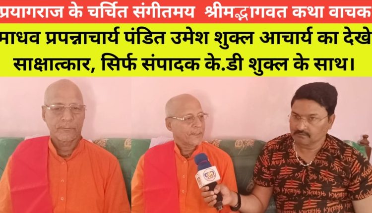 [: प्रयागराज के चर्चित संगीतमय श्रीमद्भागवत कथा वाचक माधव प्रपन्नाचार्य पंडित उमेश शुक्ल आचार्य का के.डी न्यूज़ अखबार के संपादक कपिल देव शुक्ल द्वारा राम चरित मानस के कई प्रसंगों और वर्तमान में सनातन धर्म पर चल रही चर्चाओं पर एक इंटरब्यू किया गया,देखे रिपोर्ट।