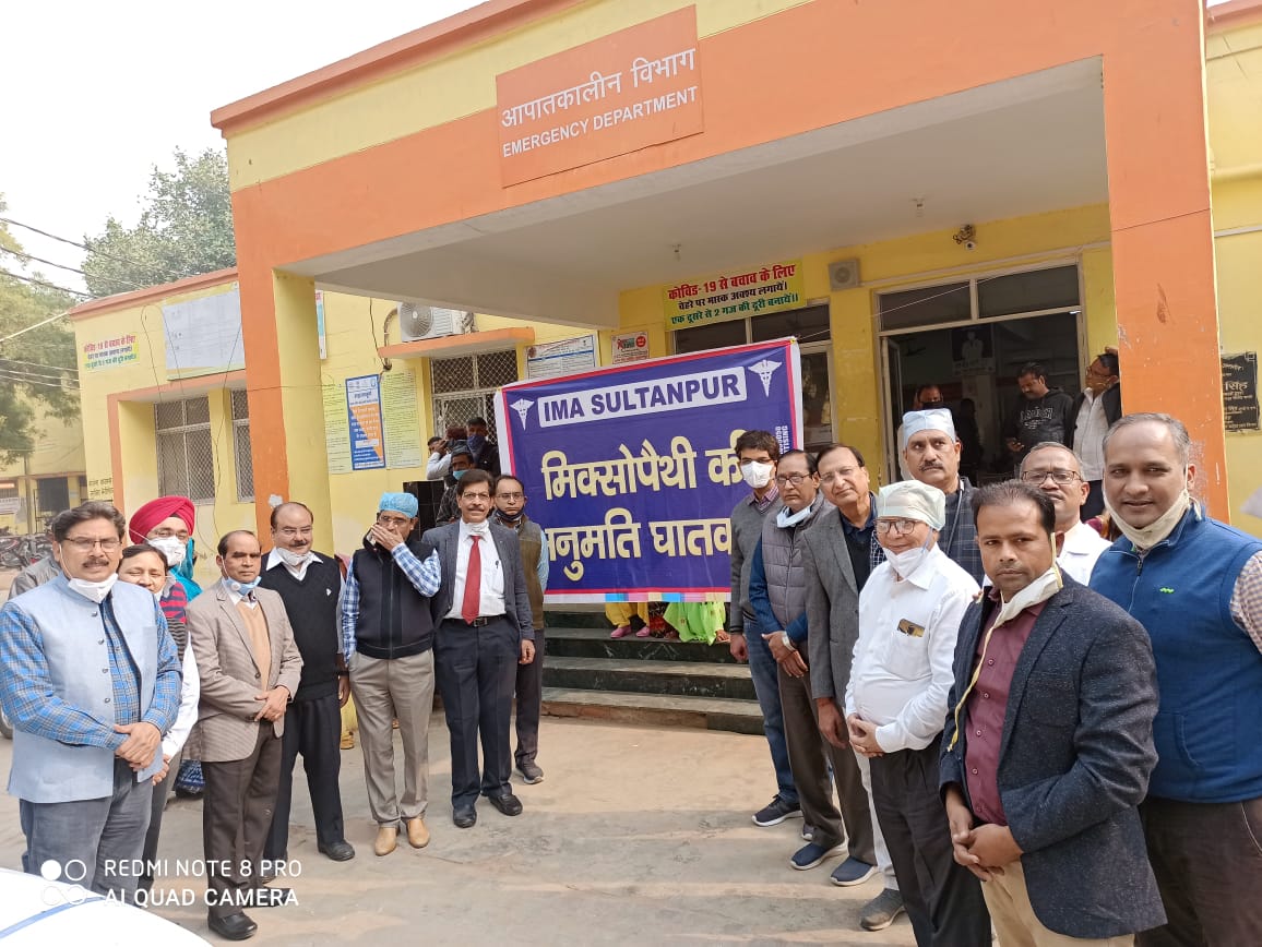 सुल्तानपुर इंडियन मेडिकल एसोसिएशन के देशव्यापी टोकन स्ट्राइक के आवाहन पर सुल्तानपुर जनपद में आज लेने के सदस्यों द्वारा जिला चिकित्सालय के इमरजेंसी कक्ष के सामने प्रदर्शन कर 2 घंटे की सांकेतिक हड़ताल की गई इंडियन मेडिकल एसोसिएशन के सचिव डॉ विवेक गुप्ता ने बताया है कि भारत सरकार द्वारा मिक्सोपैथी के विरोध में 9 दिसंबर को इंडियन मेडिकल एसोसिएशन के आवाहन पर 12:00 से 2:00 तक टोकन स्ट्राइक किया गया जिसमें अनलिमिटेड लगभग सभी सदस्यों ने भाग लिया आईएमए के सभी सदस्यों से आवाहन करते हुए कहा है कि सभी लोग 11 दिसंबर की दिन भर की स्ट्राइक को सफल बनाने के लिए एकजुट हो प्रदर्शन में प्रमुख रूप से आईएमए अध्यक्ष डॉ अखंड प्रताप सिंह सचिव डॉ विवेक गुप्ता पीएमएस एसोसिएशन के पूर्व प्रदेश उपाध्यक्ष डॉ सुभाष चंद्रा डॉ जे पी सिंह डॉ रमेश ओझा डॉक्टर संजय मिश्रा डॉ एके अग्रवाल डॉक्टर एसएन वर्मा डॉ आशीष गुप्ता डॉक्टर शैलेंद्र जयसवाल डॉ पवन सिंह डॉ एम जे शर्मा डॉ राजीव रतन मिश्रा डॉ पीके पाण्डेय सहित आई एम ए के सभी सदस्यों की उपस्थिति प्रमुख रही