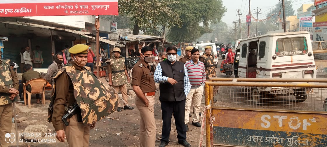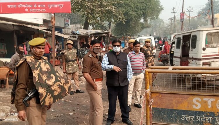 सुलतानपुर 08 दिसम्बर/जिलाधिकारी रवीश गुप्ता व पुलिस अधीक्षक शिव हरी मीना ने मंगलवार को भारत बन्द आवाह्न के दृष्टिगत जनपद में जिला चिकित्सालय से सब्जी मण्डी, अमहट चैराहा, नवीन सब्जी मण्डी अमहट, पयागीपुर चैराहा, दरियापुर चैराहा, बाधमण्डी, शाहगंज चैराहा, तिकोनिया पार्क से बाधामण्डी होते हुए राहुल चैराहा, सिरवारा रोड, बस स्टेशन आदि स्थान पर फ्लैग मार्च कर जनपद में कानून एवं शांति व सुरक्षा व्यवस्था का जायजा लिया।