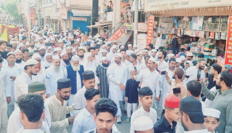 सुल्तानपुर। मुकद्दस रमजान के आखिरी जुमे जमातुल विदा की नमाज मुसलमानों ने अकीदत और एहतराम के साथ अदा की। इस मौके पर फतह-ए-मक्का की याद में हर साल निकाले जाने वाले 76वें मदहे सहाबा जुलूस को भी पूरे जोश और श्रद्धा के साथ निकाला गया। जुलूस की शुरुआत चौक स्थित बीबिया मस्जिद से हुई,जिसका नेतृत्व मौलाना मुहम्मद कसीम कासमी ने किया।जुलूस के दौरान मौलाना मुहम्मद उसामा कासमी ने नात और इस्लामी कलाम पेश किए। जुलूस शाहगंज, डाकखाना चौराहा, गंदा नाला, चौक घंटाघर और चित्रा गली से होते हुए मदरसा जामिया इस्लामिया, खैराबाद अन्नू चौराहा पर संपन्न हुआ।इस मौके पर मौलाना मुहम्मद उस्मान कासमी, जमीयत उलेमा-ए-हिंद के अध्यक्ष मौलाना सैय्यद मताहरुस्सलाम कासमी, शिक्षक नेता निजाम खान, एडवोकेट राशिद खान, सभासद अहमद रिजवान अहमद, मिर्जा उमेर,अलकमा नोमान, इकरमा और समाजसेवी इलियास सहित कई प्रमुख लोग मौजूद रहे। अपराध निरोधक समिति के अमर बहादुर सिंह और अनिल द्विवेदी भी जुलूस में शरीक हुए।मुस्लिम पर्सनल लॉ बोर्ड के आह्वान पर वक्फ बिल संशोधन 2024 के विरोध में मुस्लिम समुदाय ने बांहों पर काली पट्टी बांधकर मौन प्रदर्शन किया। शांतिपूर्ण तरीके से हुए इस प्रदर्शन में समुदाय के लोगों ने अपने विचार प्रकट किए और वक्फ संपत्तियों के संरक्षण की मांग की।जुलूस और प्रदर्शन के दौरान प्रशासन पूरी तरह सतर्क रहा। पुलिस बल की तैनाती के बीच शांतिपूर्ण तरीके से कार्यक्रम संपन्न हुआ। स्थानीय लोगों ने आपसी सौहार्द और गंगा-जमुनी तहजीब की मिसाल पेश की।