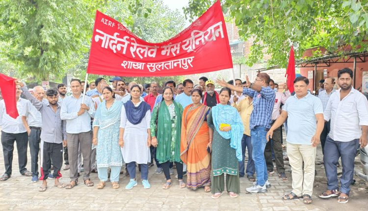 आठवें वेतन आयोग को लेकर सुल्तानपुर जंक्शन पर रेल कर्मियों का धरना