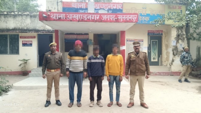 थाना अखण्डनगर पुलिस टीम ने सर्विलांस सेल की मदद से घटना का सफल अनावरण करते हुए मुखबिर की सूचना पर तीन अभियुक्तों को गिरफ्तार किया है। गिरफ्तार आरोपियों में