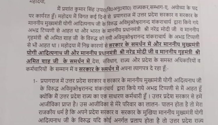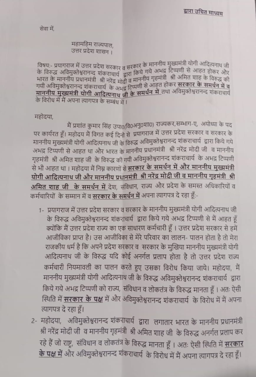 अयोध्या न्यूज़, प्रशांत कुमार सिंह इस्तीफा, डिप्टी GST कमिश्नर, CM योगी अपमान, शंकराचार्य बयान