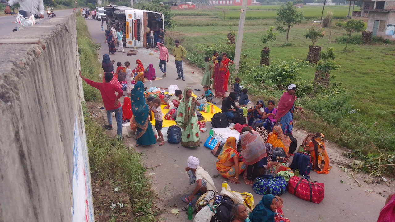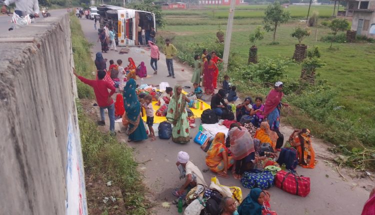 बहराइच से पन्ना धाम जा रही श्रद्धालुओं की बस पलटी, 35 यात्री घायल