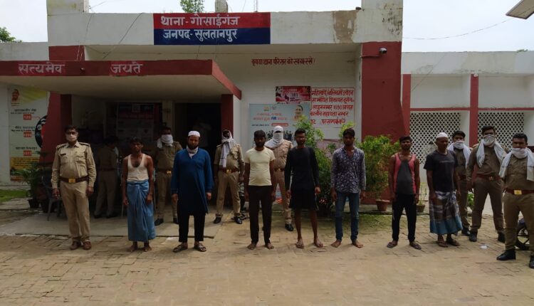 पुलिस अधीक्षक के निर्देशन में अपराध एवं अपराधियों के विरुद्ध चलाये जा रहे अभियान के तहत अपर पुलिस अधीक्षक व एवं क्षेत्राधिकारी जयसिंहपुर के पर्यवेक्षण में थाना गोसाईगंज पुलिस द्वारा मु0अ0सं0-372/20 धारा 429/188/269 भाद0वि0 व 11 पशु क्रूरता अधिनियम तथा 03 महामारी अधिनियम सें सम्बंधित 07 नफर अभियुक्त 1- मो0 शकील पुत्र मो0 शफीक 2- महबूब आलम पुत्र मो0 शकील 3- मो0इब्रहिम 4-मो0 कलाम 5-मो0 इस्लाम पुत्रगण मो0 जलीम 6- मो0 इब्रहिम पुत्र मो0 हाशिम निवासीगण फरीदीपुर 7-अरमान निवासी पिपरी थाना गोसाईगंज को गिरफ्तार कर मा0 न्यायालय रवाना किया गया ।