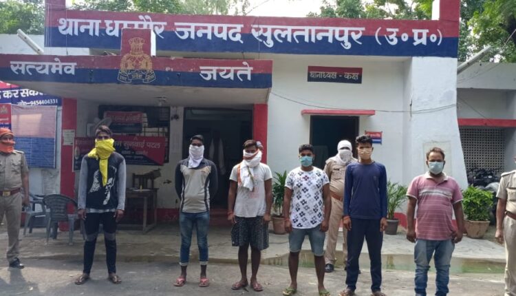 पुलिस अधीक्षक सुलतानपुर के निर्देशऩ में अपराध एवं अपराधियों के विरुद्ध चलाये जा रहे अभियान के तहत थाना-धम्मौर पुलिस टीम द्वारा मु0अ0सं0- 180/2020 धारा- 147/148/149/307/323/504/506/336 भा0द0वि0 से सम्बन्धित अभियुक्तगण 01. राज बब्बर पुत्र रती पाल, 02. राम प्रकाश शर्मा पुत्र रविन्द्र शर्मा, 03. अभिमन्यु शर्मा पुत्र जनार्दन, 04. कृपा शंकर पुत्र उदयराज, 05. कल्लू उर्फ जयप्रकाश पुत्र रविन्द्र शर्मा, 06. उमेश यादव पुत्र रामसरन नि0गण- सराय भांई थाना- धम्मौर जनपद सुलतानपुर को गिरफ्तार किया गया ।