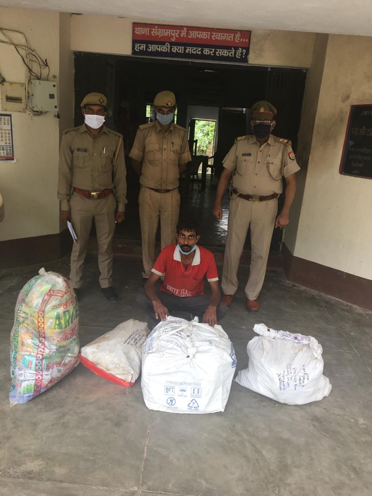 जिसको संग्रामपुर पुलिस टीम ने महेन्द्र सिंह सचान के नेतृत्व में हेड कांस्टेबल रावेन्द्र प्रताप सिंह और कांस्टेबल अरुण पाण्डेय के साथ 31/07/2020 को 9:30 पर मुखविर की सूचना पर निवासी मिसिरपुर मजरे भैरोपुर से चोरी के समान के साथ गिरफ्तार किया।जिसमें 03 बोरी व 01 झोला परचून का सामान बरामद किया।