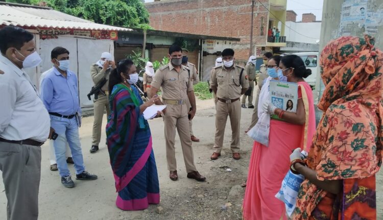 सुलतानपुर 27 जुलाई/जिलाधिकारी सी0 इन्दुमती एवं पुलिस अधीक्षक शिव हरी मीना ने संयुक्त रूप से नगर क्षेत्र सुलतानपुर का भ्रमण कर लॉकडाउन के अनुपालन एवं सर्वे टीम द्वारा किये जा रहे सर्वे की हकीकत जानी।
