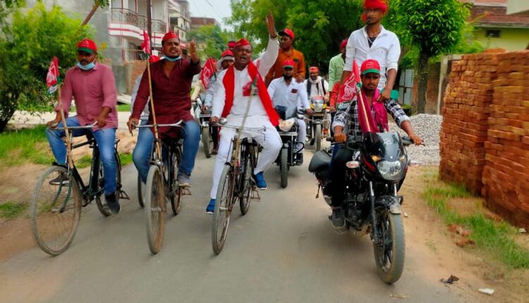 अनुराग प्रजापति ने कहा कि अखिलेश यादव को 2022 में मुख्यमंत्री बनाना है।वही समाजवादी पार्टी के युवा नेता सूबेदार यादव ने कहा अखिलेश यादव दलित,पिछड़े, मजलूम,गरीब,असहाय,कमजोर लोगों के नेता हैं।हमेशा किसान मजदूरों का साथ दिया है अपने मुख्यमंत्री काल में अखिलेश यादव ने जनहित में कई योजनाएं बनाई थी जिसका बहुत प्रभावी तरीके से पालन किया गया था।योगी सरकार सिर्फ प्रदेश की जनता को बरगलाने का काम कर रही है।अखिलेश सरकार द्वारा किए गए कार्यों को सिर्फ फीता काटकर और अपना बैनर लगाकर देश की भोली-भाली जनता को बरगलाने का काम कर रही है।जहां उत्तर प्रदेश की कल्पना अखिलेश यादव ने उत्तम प्रदेश बनाने की थी।योगी आदित्यनाथ की योजनाएं पूर्ण रूप से बिफल है।जनता के लिए नहीं है।इस अवसर पर समाजवादी पार्टी के सैकड़ों कार्यकर्ता उपस्थित थे।