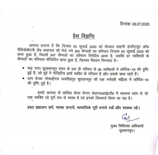 सुल्तानपुर-200 के पार हुआ कोरोना संक्रमित लोगों का आंकड़ा। बच्चों समेत 6 नये मिले कोरोना मरीज। अब तक 204 लोग हो चुके हैं कोरोना संक्रमित। मुख्य चिकित्साधिकारी डॉ सीबीएन त्रिपाठी ने की पुष्टि