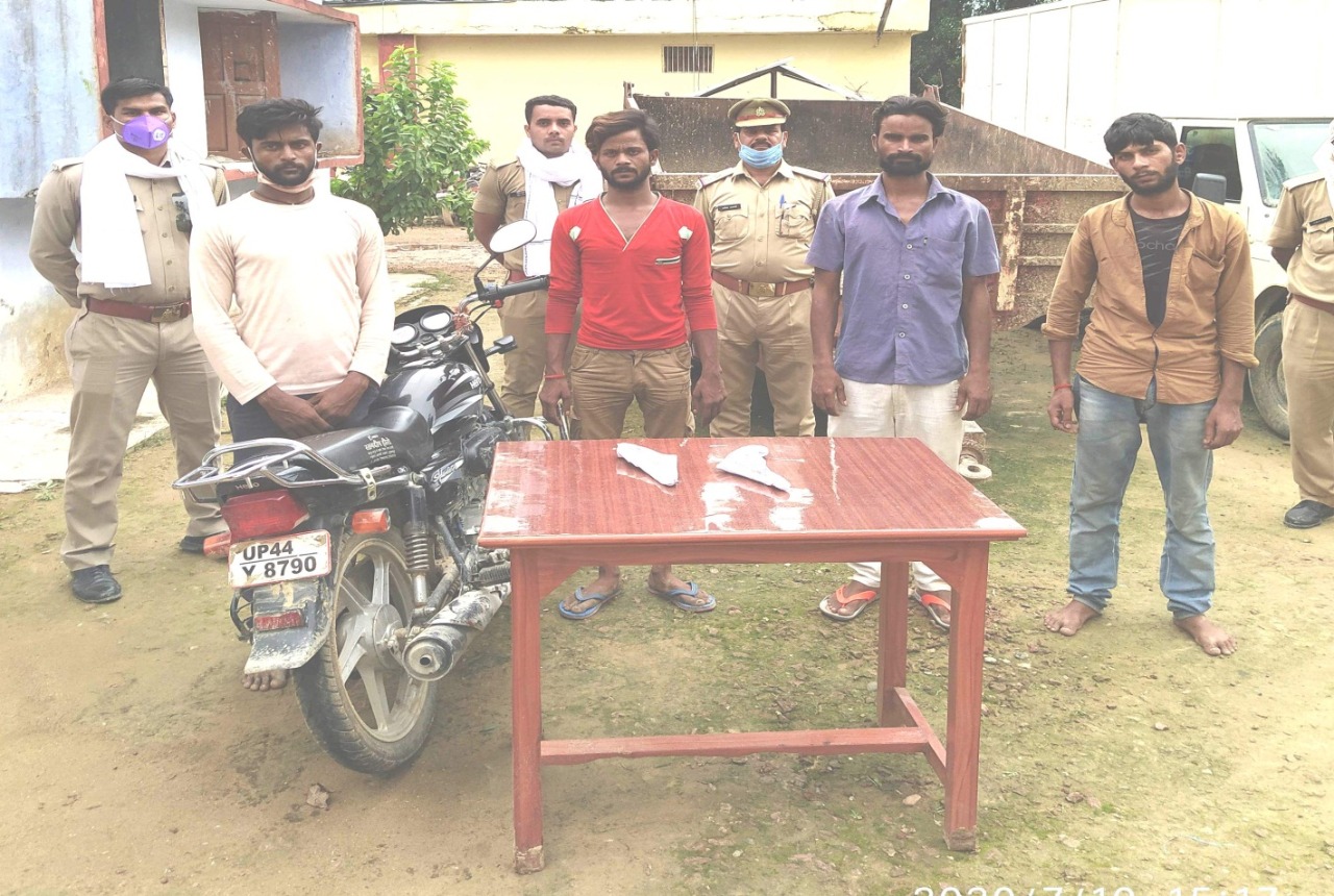 पुलिस अधीक्षक सुलतानपुर के आदेशानुसार तथा अपर पुलिस अधीक्षक सुलतानपुर व क्षेत्राधिकारी जयसिंहपुर के कुशल निर्देशन में मु0अ0सं0 328/2020 धारा 379 का सफल अनावरण करते हुए मुकदमे मे चोरी गये माल प्रेशर ट्राली व अभियुक्त की तलाश मे मुखबिर की सूचना 1. राजेश जमादार पुत्र वंशीलाल 2. रवीन्द्र कुमार पुत्र पन्ना लाल बेलदार नि0गण ग्राम बन्धुआ कला थाना कुड़वार सुलतानपुर 3. पवन हरिजन पुत्र राजाराम नि0उघड़पुर थाना धम्मौर सुलतानपुर 4. लल्लू पाल पुत्र राजाराम नि0 उघड़पुर थाना धम्मौर जनपद सुलतानपुर को मुखबिर की सूचना पर बलिया लखनऊ हाईवे टाटियानगर बहद ग्राम सैफूल्लागंज से गिरफ्तार किया गया ।अभियुक्त एक अदद मोटर साईकिल न0 यूपी44 बाई 8790 जिसको अभियुक्तगण नम्बर व प्लेट बदल बदल कर प्रयोग करते रहे बरामद हुई एवं अभियुक्त राजेश उपरोक्त के पास से एक अदद देशी तमंचा व 02 जिन्दा कारतूस व अभियुक्त रवीन्द्र उपरोक्त के पास से एक अदद देशी तमंचा व 01 जिन्दा कारतूस बरामद हुआ , अभियुक्तगण के निशा देही पर अ0 सं0 328/2020 धारा 379 भादवि मे चोरी गये प्रेशर ट्राली को बरामद किया गया ।