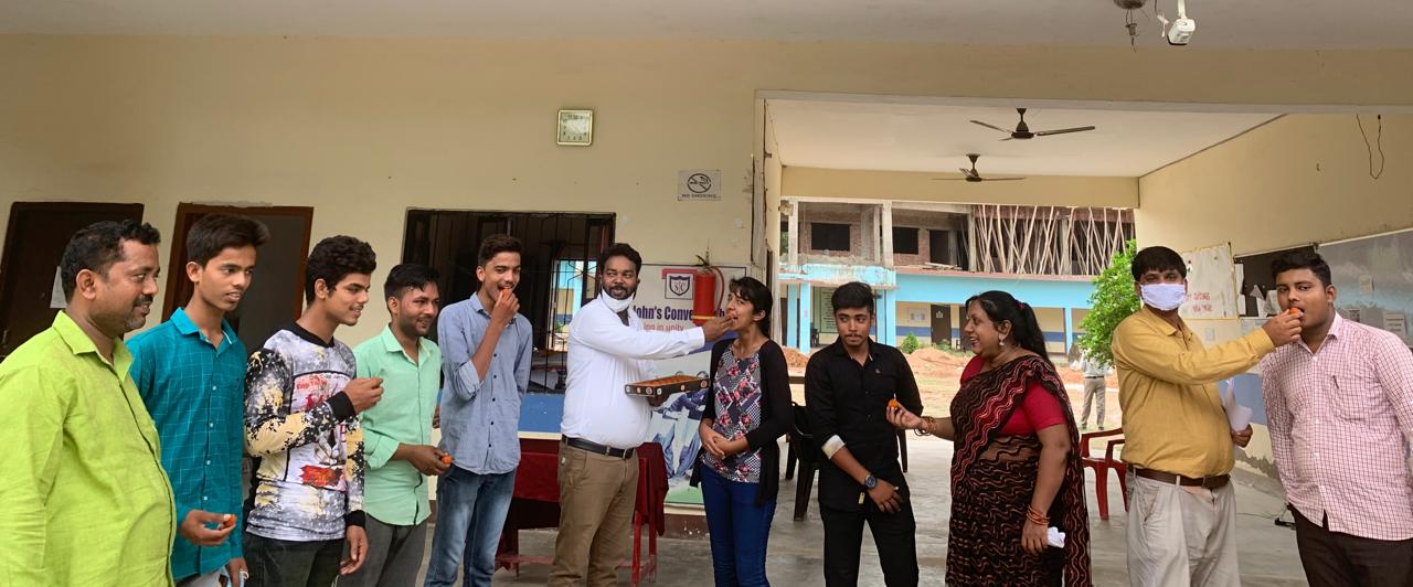 बच्चो को मिठाई खिलाकर खुशी मनाई