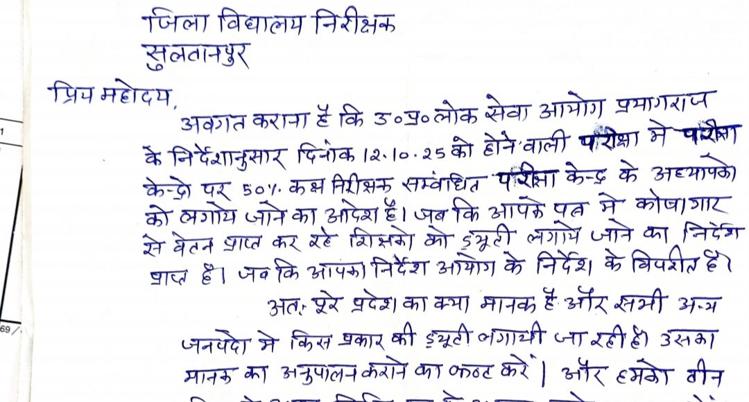 एमएलसी शैलेंद्र प्रताप सिंह ने जिला विद्यालय निरीक्षक की मनमानी पर लिखा पत्र