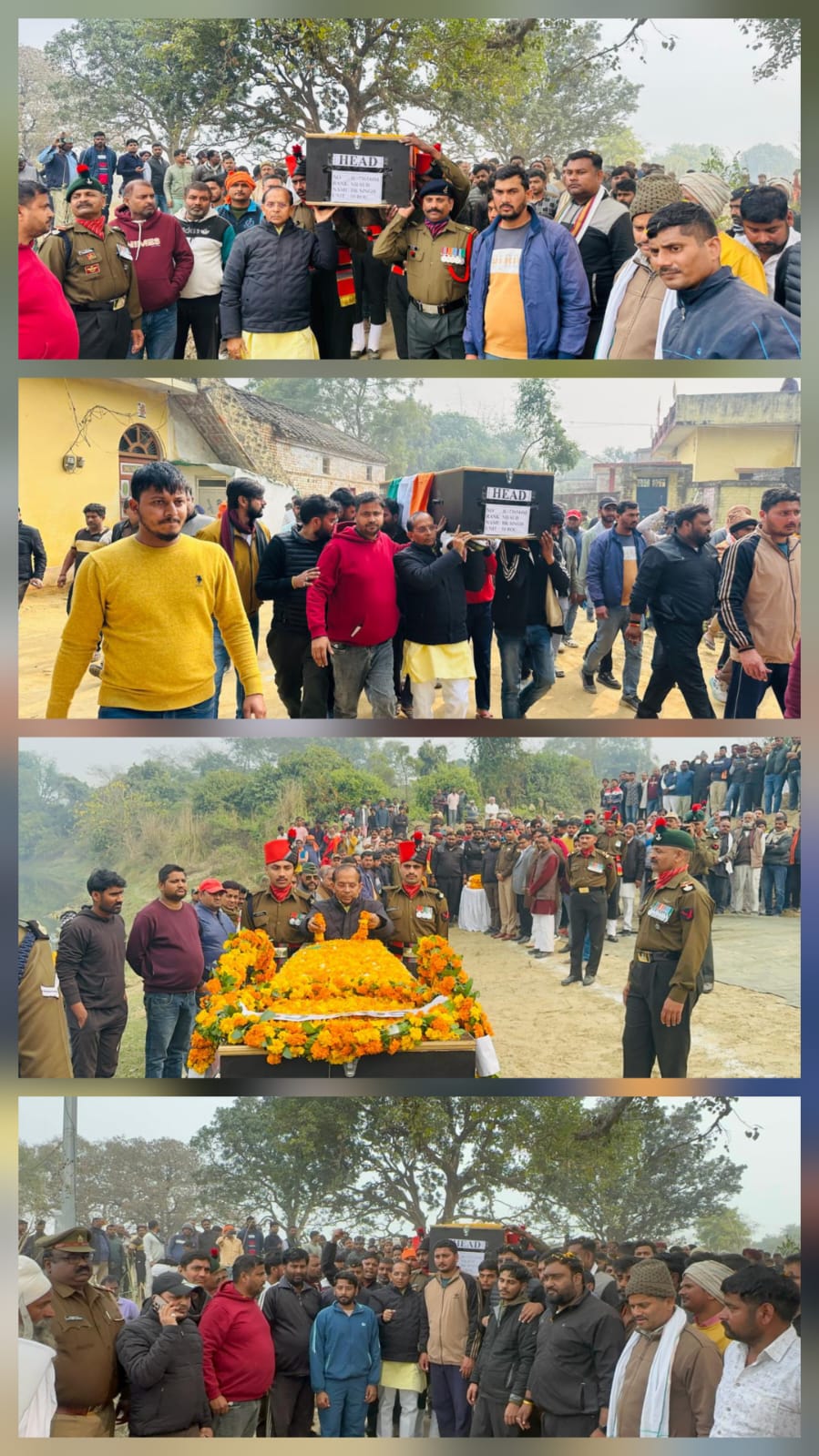 अमर शहीद भूपेंद्र सिंह का पार्थिव शरीर जैसे ही उनके पैतृक गांव पहुँचा, पूरा इलाका देशभक्ति के नारों से गूंज उठा। “भारत माता की जय” और “भूपेंद्र सिंह अमर रहें” के जयघोष से वातावरण भावुक हो गया। हर आंख नम थी, हर दिल गर्व से भरा हुआ।