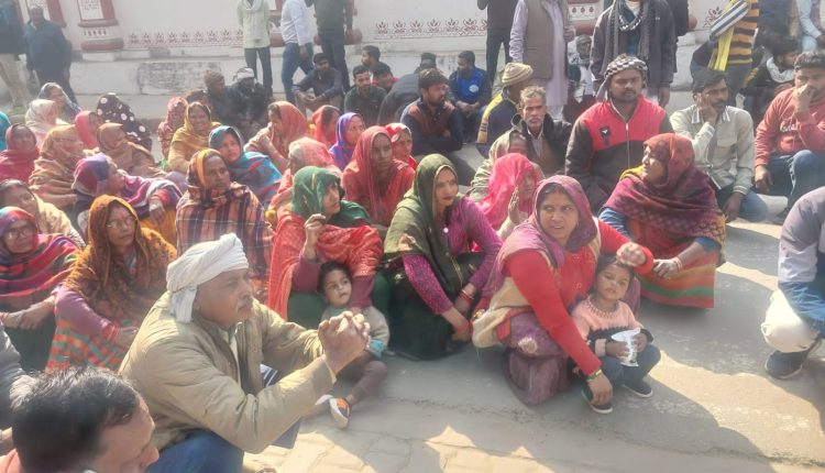 कलेक्ट्रेट गेट पर ग्रामीणों का धरना, नायब तहसीलदार पर छप्पर जलवाने का आरोप