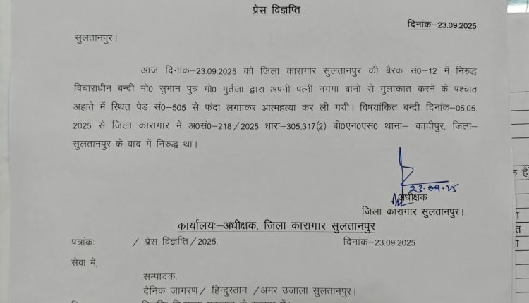 #SultanpurNews #BreakingNews #UttarPradesh #SultanpurJail #PrisonerSuicide #UPNews #SultanpurBreaking
