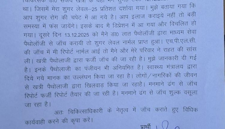 खत्री पैथोलॉजी पर फर्जी रिपोर्टिंग का आरोप, सिटी मजिस्ट्रेट ने दिए जांच के आदेश