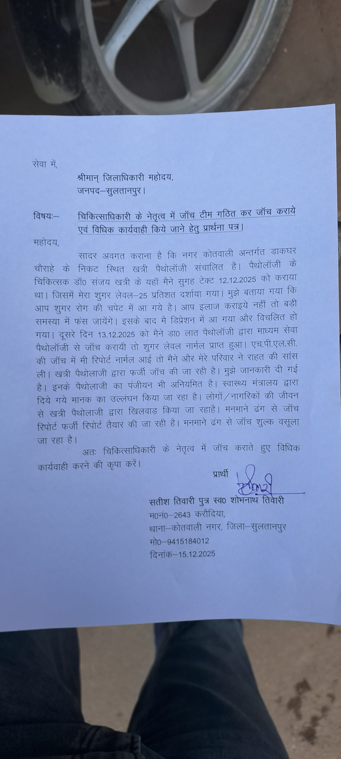 सुल्तानपुर ब्रेकिंग | पैथोलॉजी में फर्जी रिपोर्टिंग का आरोप