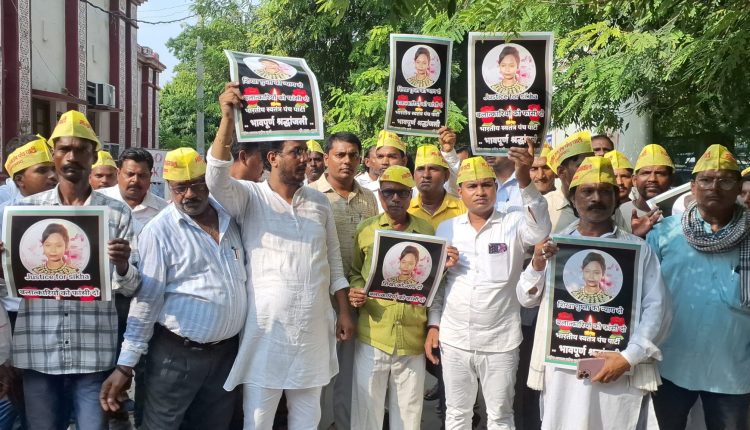 बैनर और पोस्टर लेकर बड़ी संख्या में महिलाएं व पुरुष कलेक्ट्रेट पहुंचे और पुलिस के खिलाफ नारेबाजी की।