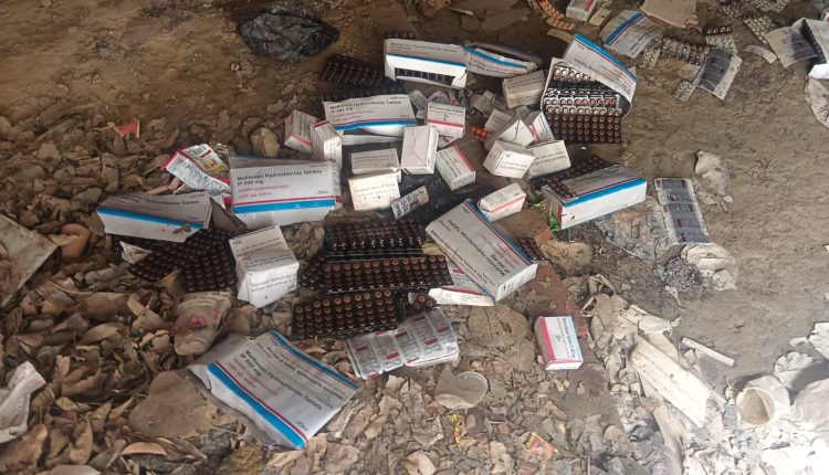 कूड़े में मिली सरकारी दवाइयां,अधीक्षक ने कहा हमारे अस्पताल की नही है यह दवा।