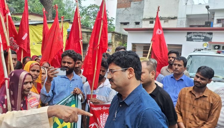 [सुल्तानपुर ब्रेकिंग–विभिन्न मांगों को लेकर संयुक्त किसान मोर्चा और भारतीय कम्युनिस्ट पार्टी के कार्यकर्ताओं ने एसडीएम सदर न्यायालय के सामने किया प्रदर्शन। प्रदर्शनकारी किसानों ने लगाई कलेक्ट्रेट में नारे। व्याप्त भ्रष्टाचार, हैंडपंप रिपोर्ट में पक्षपात, अपात्रों को पट्टा दिए जाने समेत विभिन्न मुद्दों को लेकर बुलंद की किसान नेताओं ने आवाज। वार्ता करने पहुंचे एसडीएम सदर विपिन द्विवेदी। 3 दिन के भीतर समस्याओं के निराकरण का दिया उप जिलाधिकारी सदर ने आश्वासन।