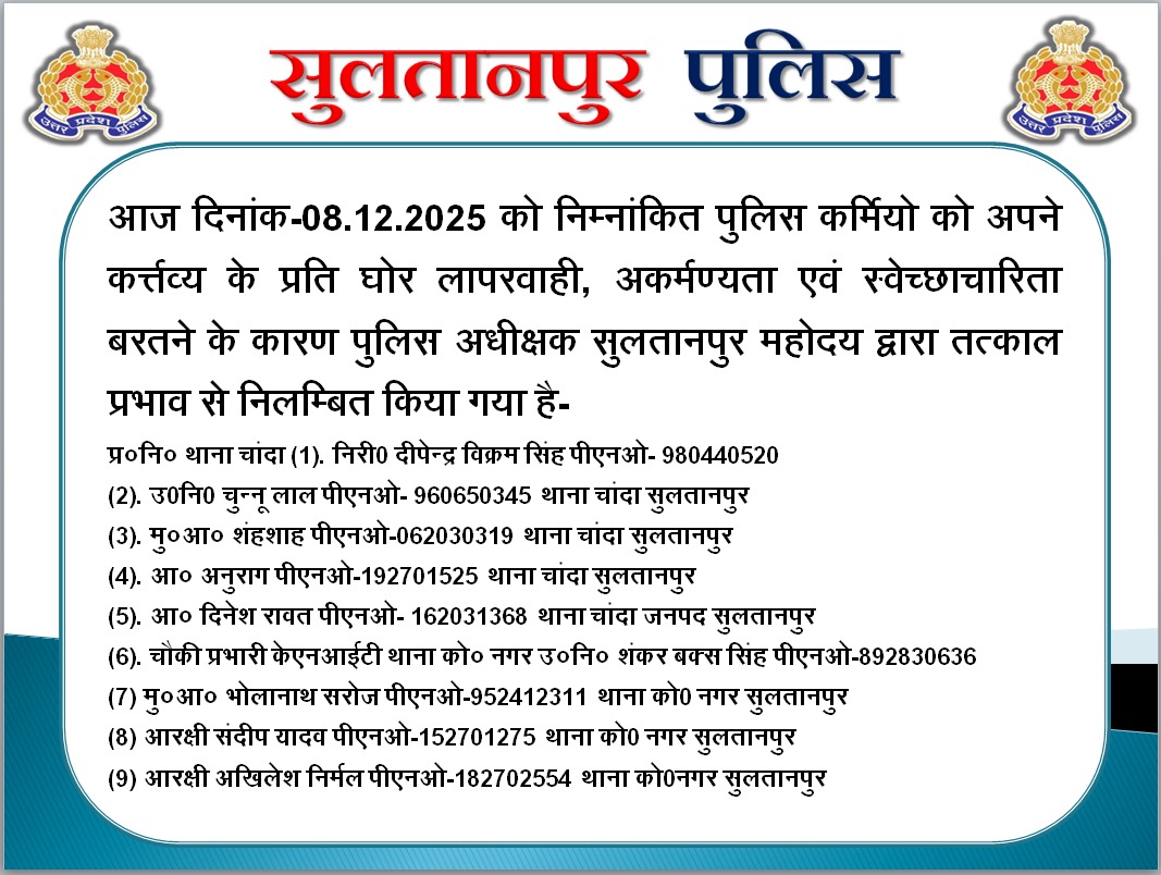 सुल्तानपुर: SP कुंवर अनुपम सिंह की बड़ी कार्रवाई, चांदा थाने के कई पुलिसकर्मी