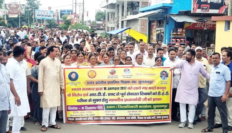 टीईटी अनिवार्यता के खिलाफ सुलतानपुर में शिक्षकों का जोरदार प्रदर्शन, प्रधानमंत्री को सौंपा ज्ञापन